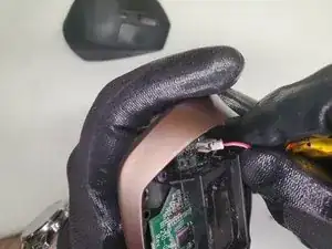 С помощью инструмента для вскрытия подденьте аккумулятор и извлеките его из мыши.