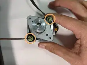 Переустановите двигатель на кронштейн, используя два из длинных винтов под шестигранник 2 мм.