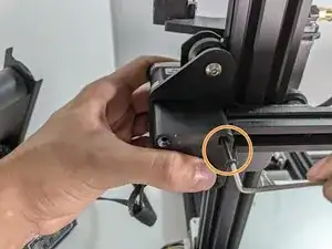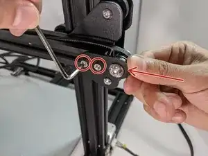 С помощью шестигранного ключа 3 мм выньте по два винта с головкой под шестигранник 3 мм с обеих сторон кронштейна по оси Y, чтобы ослабить натяжитель. Сдвиньте вперед, чтобы ослабить ремень.