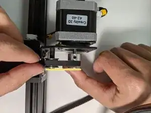Ослабьте ремень и снимите шаговый двигатель с крепления.