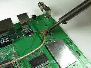 Переверните печатную плату и используйте отвертку Philips №2 для удаления винта размером 6,9 мм, крепящего плату к задней панели.