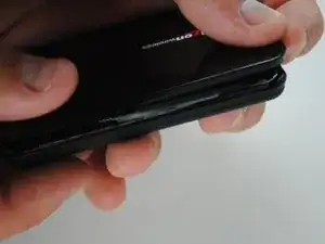 Поместите палец на заднюю часть аккумулятора, расположенную около края устройства.