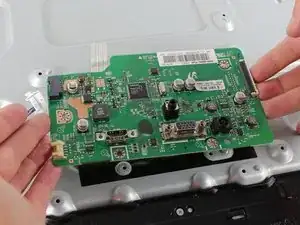 Двумя руками поднимите плату за основание материнской платы и снимите её с корпуса монитора.