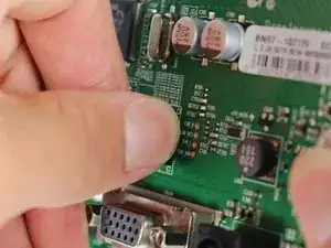 Отверткой Phillips #1 выкрутите каждый из винтов длиной 5 мм, крепящих материнскую плату к корпусу монитора.
