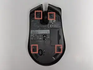 Переверните мышь и закрутите четыре винта длиной 9 мм крестовой отверткой Phillips #0 обратно на место.