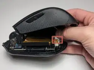 Не снимайте верхнюю крышку полностью — она соединена кабелем, и его отсоединение повредит мышь.