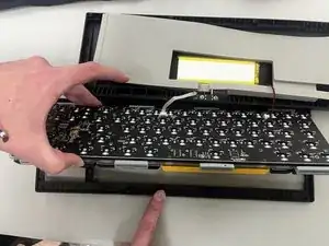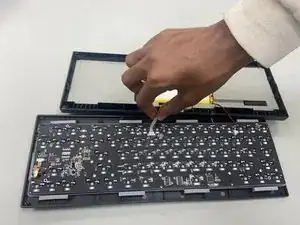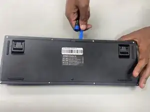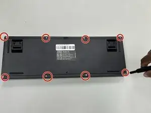 Используйте шестигранную отвертку, чтобы удалить все восемь винтов на нижней стороне клавиатуры.