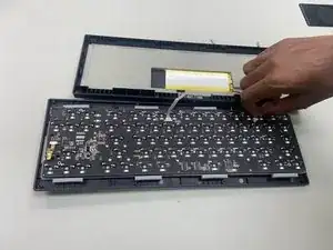 Используйте пластиковый инструмент для открытия, чтобы аккуратно приоткрыть корпус клавиатуры, двигаясь вокруг каждой стороны.