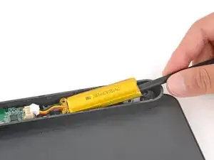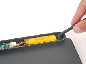 Вставьте плоский конец лопатки под правый край батареи, напротив кабелей.