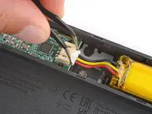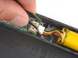 Пинцетом с изогнутыми концами плотно захватите разъём батареи и вытяните его прямо из гнезда.