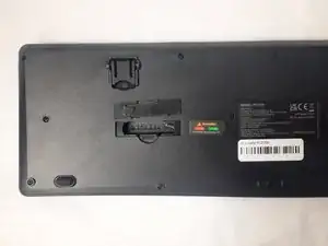 Переверните клавиатуру и снимите крышку отсека батареи, приподняв вкладку крышки.