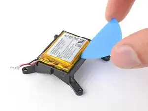 Вставьте медиатор между длинным краем батареи и её корпусом, с противоположной от кабеля стороны.