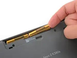 Следуйте этой инструкции, чтобы заменить две AAA батареи в вашей беспроводной клавиатуре Logitech Pebble Keys 2 K380s.