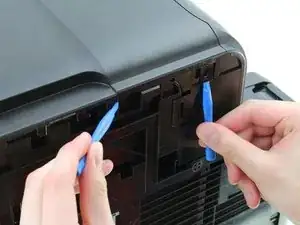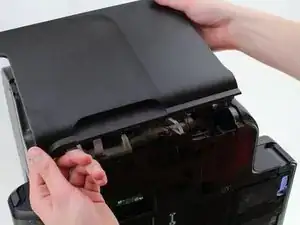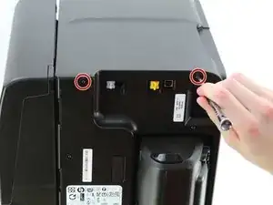 Выкрутите два винта длиной 12 мм с крестообразным шлицем T10 на верхнем краю принтера.