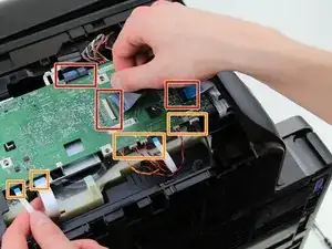 Отсоедините кабели, подключённые к нижней стороне материнской платы, аккуратно вытащив их из разъёмов.
