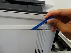 Используйте пластиковый инструмент для открытия, чтобы снять правую боковую панель принтера.
