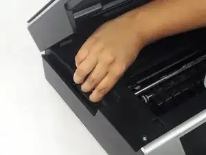 Откройте принтер, подняв верхнюю часть. Убедитесь, что вы поднимаете с самой нижней части сканера.