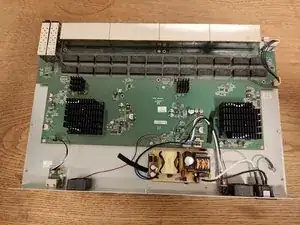 Вставьте новый блок питания в коммутатор и закрепите его оригинальными 4 винтами.