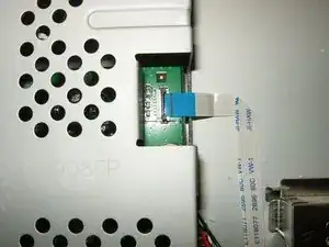 Пока не снимайте металлический корпус с панели. Сдвиньте его вверх в направлении стрелки — это сделает разъём данных дисплея более доступным.