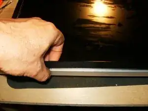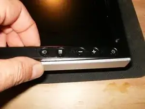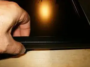 Начните снимать переднюю рамку. Она защёлкивается и может быть снята, если вставить кончики пальцев между рамкой и LCD-панелью.