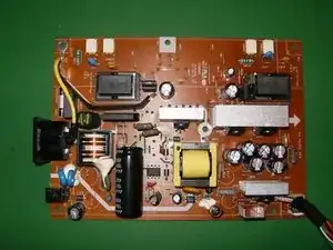 Неплохой монитор за неплохую цену (бесплатно). У этой модели часто возникают проблемы с блоком питания. Наиболее распространённые — вышедшие из строя конденсаторы и переключающие диоды. Пока у меня нет схемы блока питания, я решил заменить блок питания на заведомо исправный. Это прямолинейная замена; самая трудная часть — передняя рамка. Её неудобно отщёлкивать кончиками пальцев.