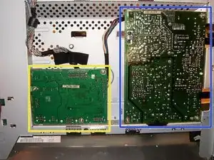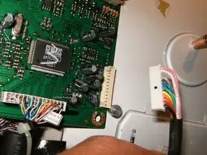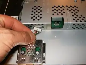 Кабель от блока питания к видеоплате трудно снять. Чтобы разъём не сломался, возможно потребуется снять разъём с видеоплаты. Для этого снимите видеоплату.