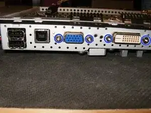 Снимите четыре стойки. Две у VGA-разъёма и две у DVI-разъёма.