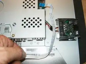 Шлейф от панели кнопок по-прежнему присоединяет рамку к монитору.