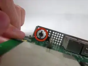Открутите два винта с крестообразной головкой Phillips длиной 5 мм, расположенные в передних углах материнской платы.