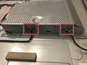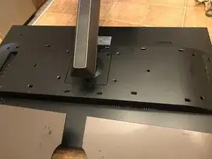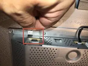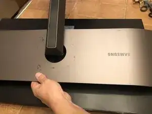 теперь отведите подставку назад, чтобы освободить две металлические защёлки и снять подставку.