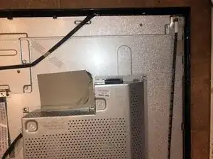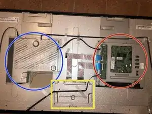 Оттянув клеевую полоску и сдвинув держатель платы питания с выступа монитора, можно снять его.