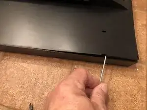 Подставка прикреплена к монитору двумя (2) винтами с крестообразной головкой. Снимите их