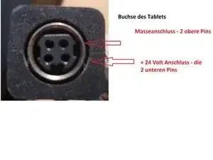 Черный и синий провод припаяны к отрицательному выходу (V-). Красный и белый провод припаяны к выходу +24В (V+). Примечание: черный провод соединен с металлическим корпусом штекера.