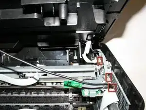 Удалите три винта Phillips №6 (головка 5 мм, размер 1 мм), соединяющих блок сканера с принтером.