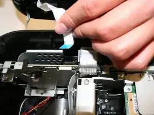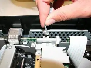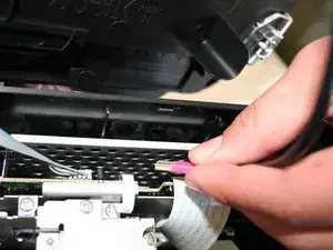 Аккуратно отключите белый ленточный кабель передачи данных.