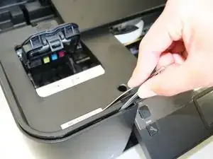Снимите пластиковую крышку, разблокировав пластиковые петли на внутренних краях принтера. Используйте пластиковую открывалку или пинцет, чтобы аккуратно пройти вдоль зазора вокруг принтера и разблокировать крышку.