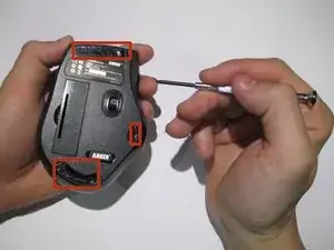 Отверткой Phillips #0 отвинтите четыре винта на нижней части мыши.