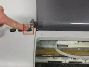 Закройте крышку принтера и дважды нажмите кнопку картриджа на крайней правой стороне.