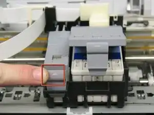 Нажмите кнопку на крайней правой стороне, чтобы сдвинуть держатели картриджей. (См. второе изображение)