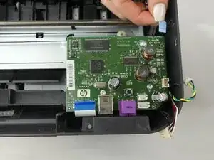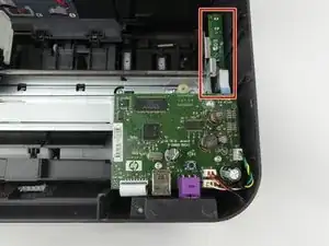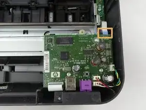 При обращённой к вам задней части принтера датчик находится справа и перед основной печатной платой. Датчик контроля бумаги также будет прикреплён к небольшой печатной плате. Вы будете заменять эту печатную плату.