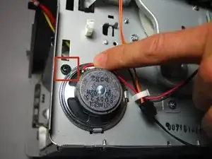 Найдите черный винт диаметром 7 мм, удерживающий динамик на месте.