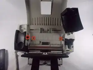 Осторожно снимите черную крышку, на которой находится телефон. Под этой крышкой вы найдете еще два винта.