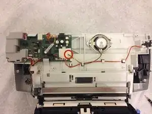 Проследите за проводами, соединенными с динамиком, к зеленой материнской плате.