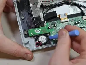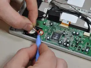 С помощью пластикового инструмента для открытия отсоедините разноцветные провода, расположенные на плате ввода/вывода. Это те же самые разноцветные провода, которые соединяют заднюю крышку с платой ввода/вывода.