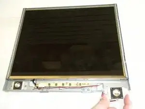 Подденьте монитор пластиковой лопаткой, чтобы освободить защёлки, удерживающие крышку.