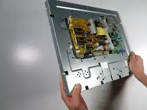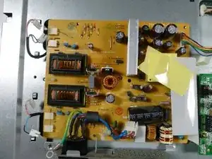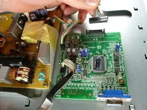 Положите монитор на бок так, чтобы блок питания и плата оказались справа.