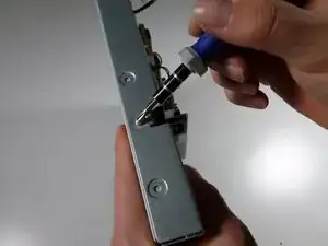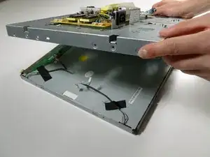 Удалите пять винтов Phillips #2 длиной 9.5 мм, расположенных по периметру монитора.
