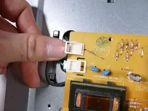 С помощью тонкогубцев снимите четыре разъёма дисплея, потянув их строго влево.
