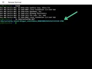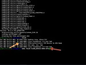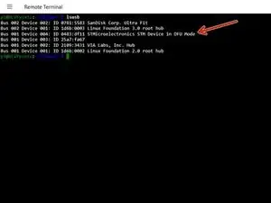 Отправьте следующую команду, чтобы проверить связь между Pi и Spider, и запишите ID режима DFU