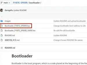 На странице GitHub нажмите на Bootloader_FYSETC_SPIDER.hex